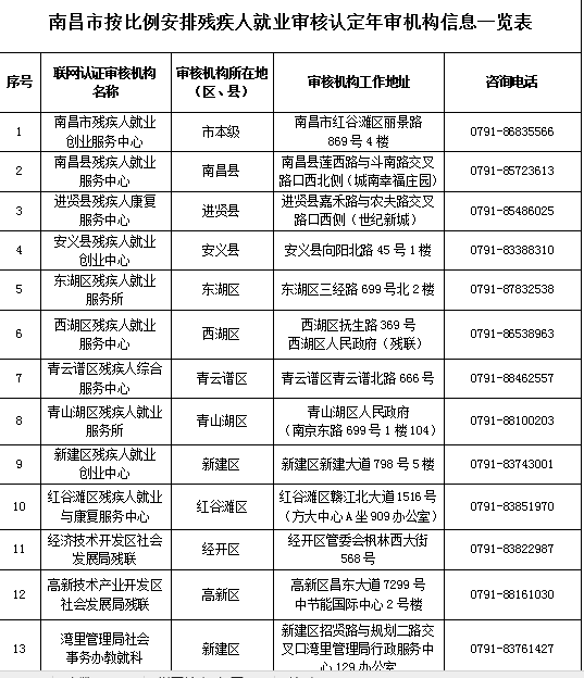 2.南昌市按比例安排殘疾人就業(yè)審核認定年審機構(gòu)信息一覽表